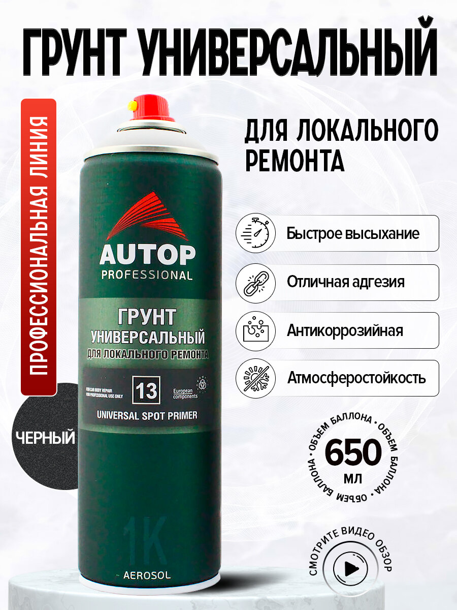 10 цен на AP013-2 Грунт Универсальный "Autop" №13 для локального ремонта, цвет Черный, аэрозольный, 650 мл "Автоп"