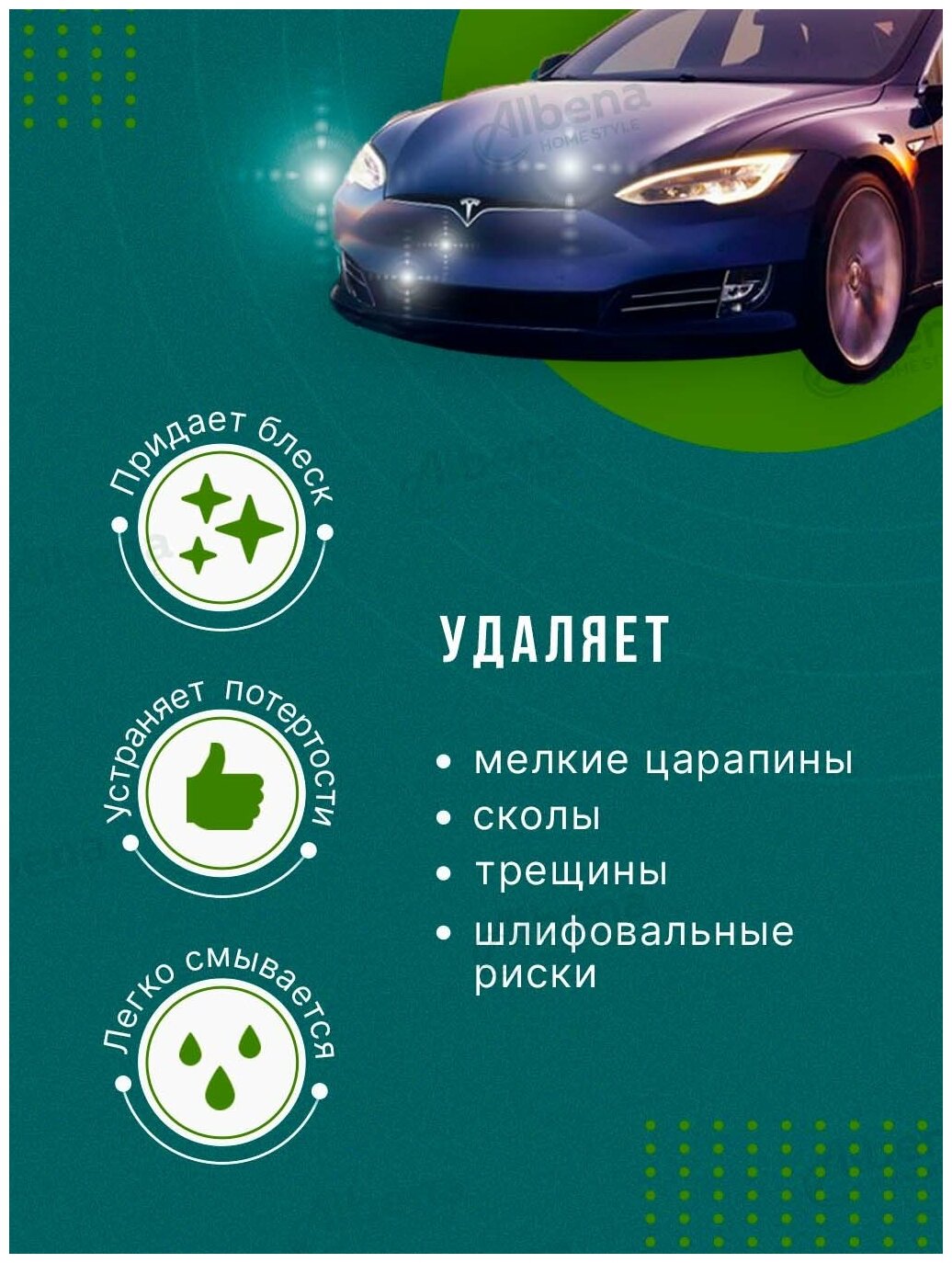 | Действие | маскирует царапины, устраняет царапины |