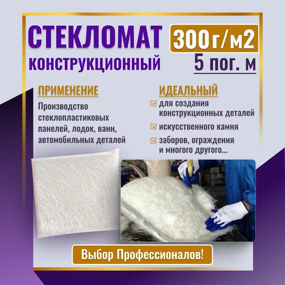 Стекломат эмульсионный 300 грамм (упаковка 5 погонных метров) информация: