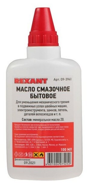 Масло смазочное бытовое REXANT (масленка), 100 мл информация: