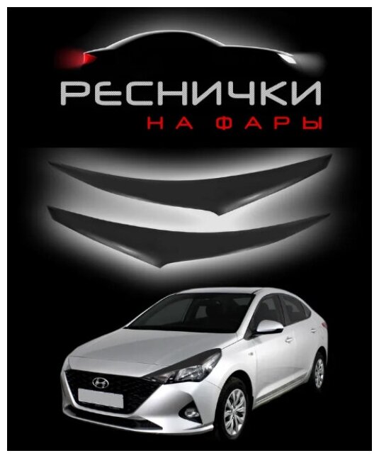 Отзывы на Реснички на фары для Hyundai Solaris II 2017–2020 / накладки на Хендай Солярис 2 – 2шт