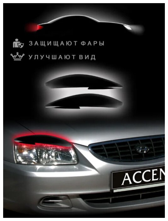 Отзывы на Реснички на фары для Hyundai Accent 1999-2012 / накладки на Хендай Акцент – 2шт