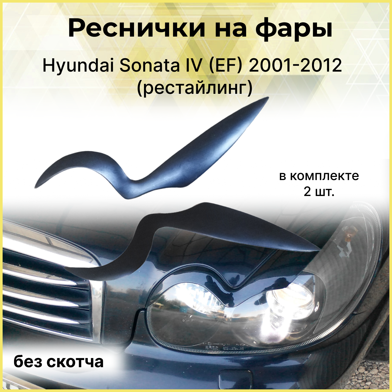 10 цен на Накладки на передние фары (реснички) Hyundai Sonata IV (EF) 2001-2012 (рестайлинг)
