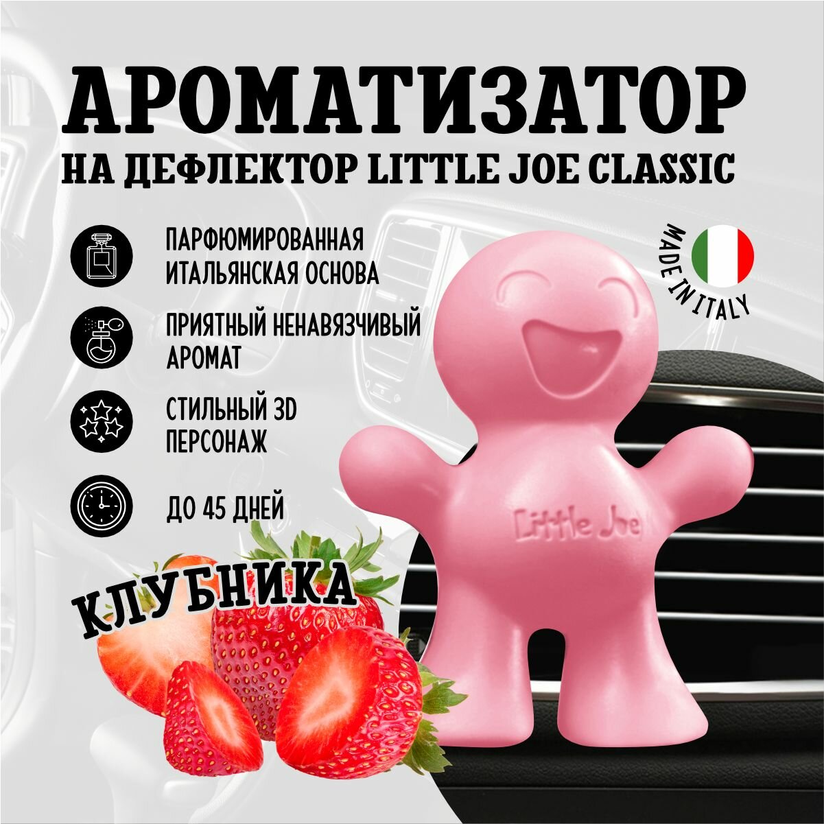 Ароматизатор для автомобиля в дефлектор улыбающийся человечек Little Joe Classic Strawberry, Клубника информация: