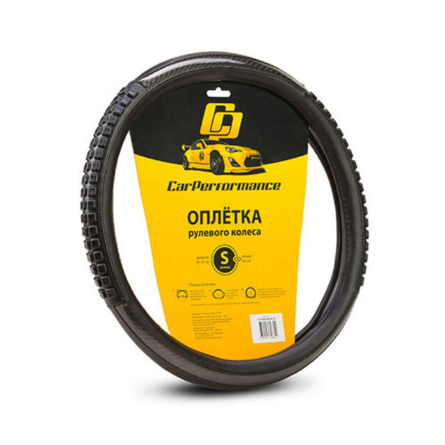 Оплётка руля CAR PERFORMANCE CP-2060 BK/BK (S), экокожа, две силиконовые вставки под хват, гладкая основа с вставкой под карбон чёрый, разм.S,