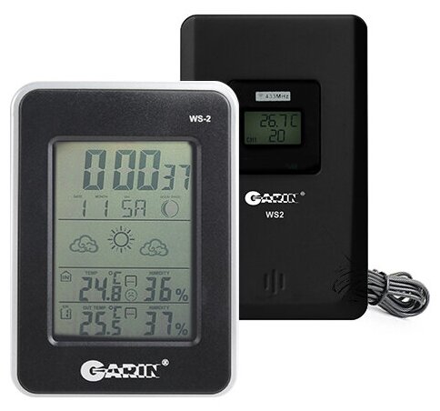 Домашняя метеостанция GARIN WS-2 (термометр-гигрометр-часы-дата-фазы Луны) с внешним беспроводным датчиком