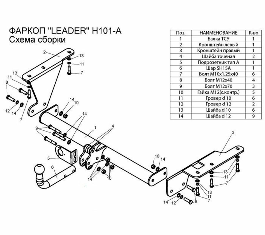 Фаркоп Лидер Плюс на Хонда СРВ 3 2006-2012, арт:H101-A информация: