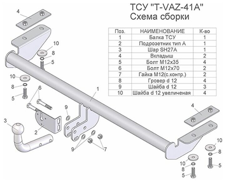 Фаркоп Tavials на Лада Веста Кросс седан 2015-2022, арт:T-VAZ-41A-1 информация: