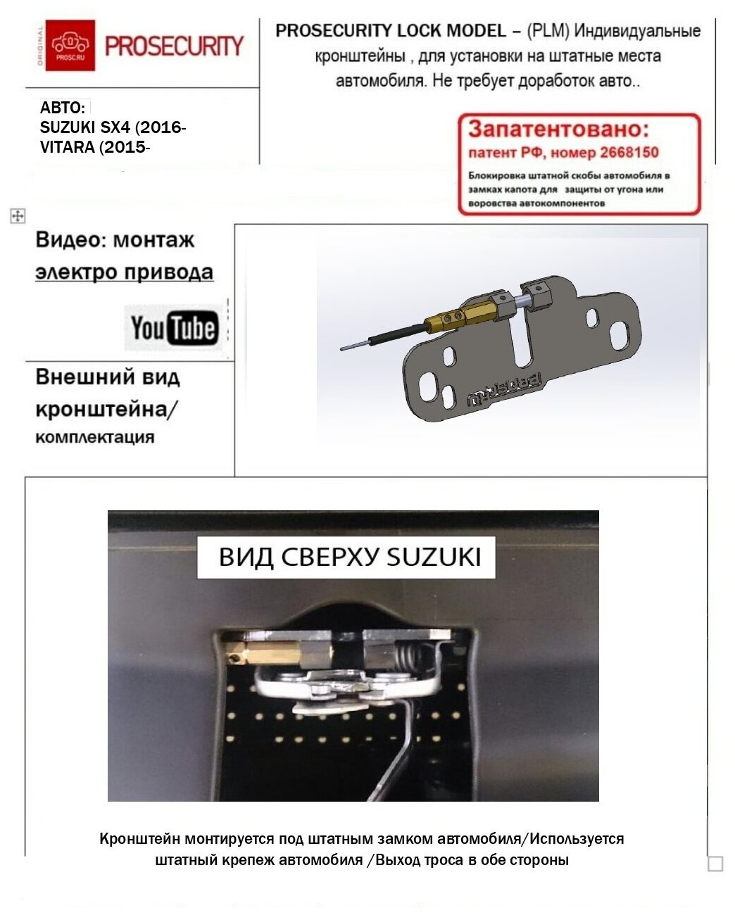 Отзывы на Замок капота для Suzuki Vitara (2015-), SX 4 (2016-) электромеханический PROSECURITY