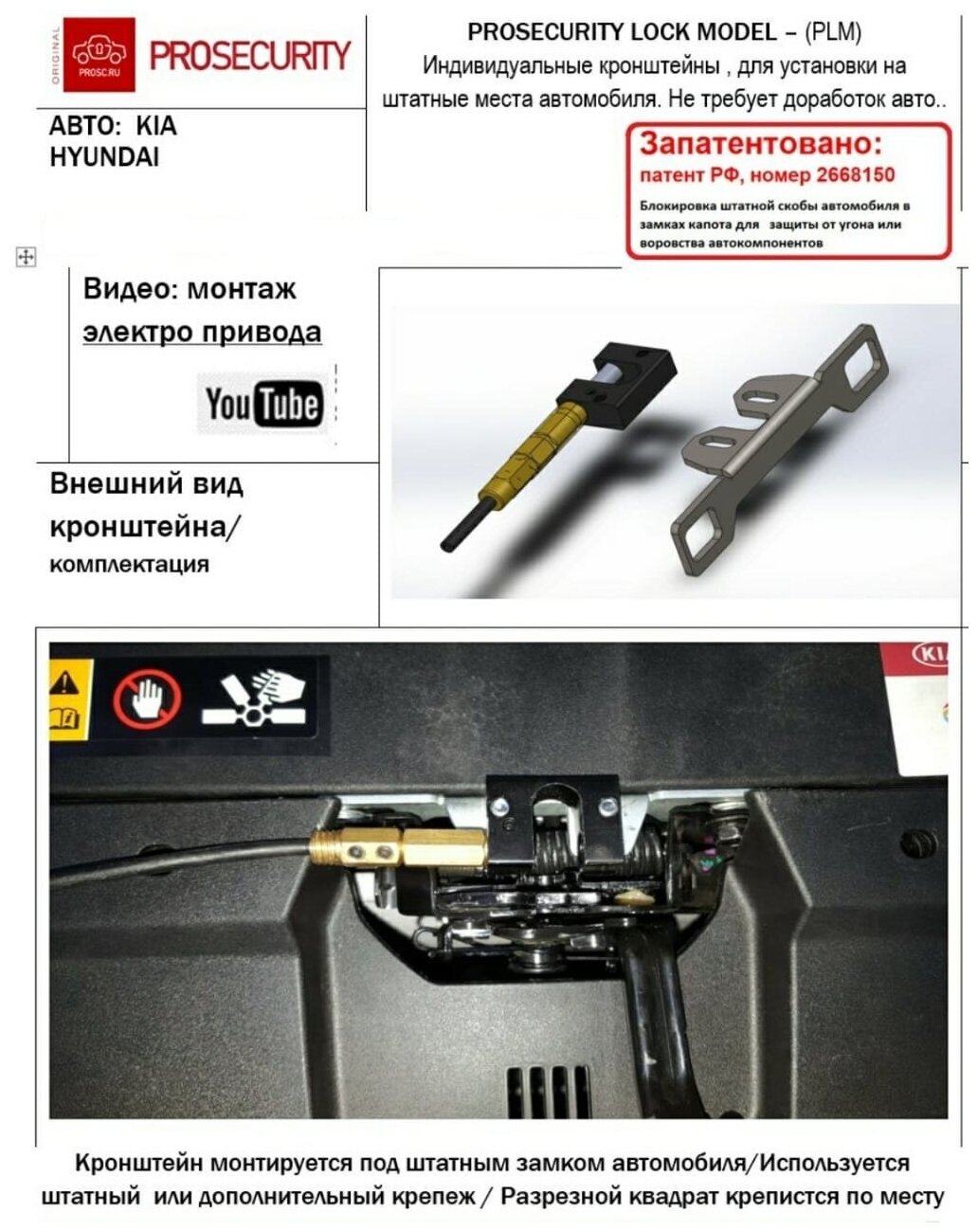 Отзывы на Механический замок капота для Kia Ceed, Cerato, К5, Optima, Soul PROSECURITY