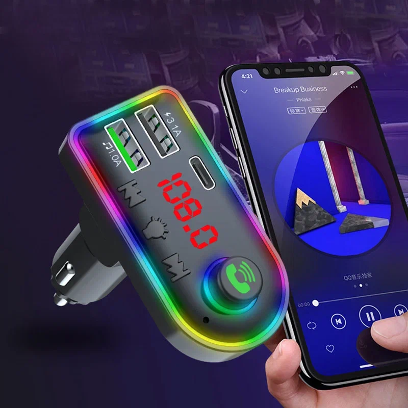 FM трансмиттер Bluetooth с RGB подсветкой / Модулятор автомобильный / Адаптер быстрой зарядки с 3 USB 3.1 A TDS-13