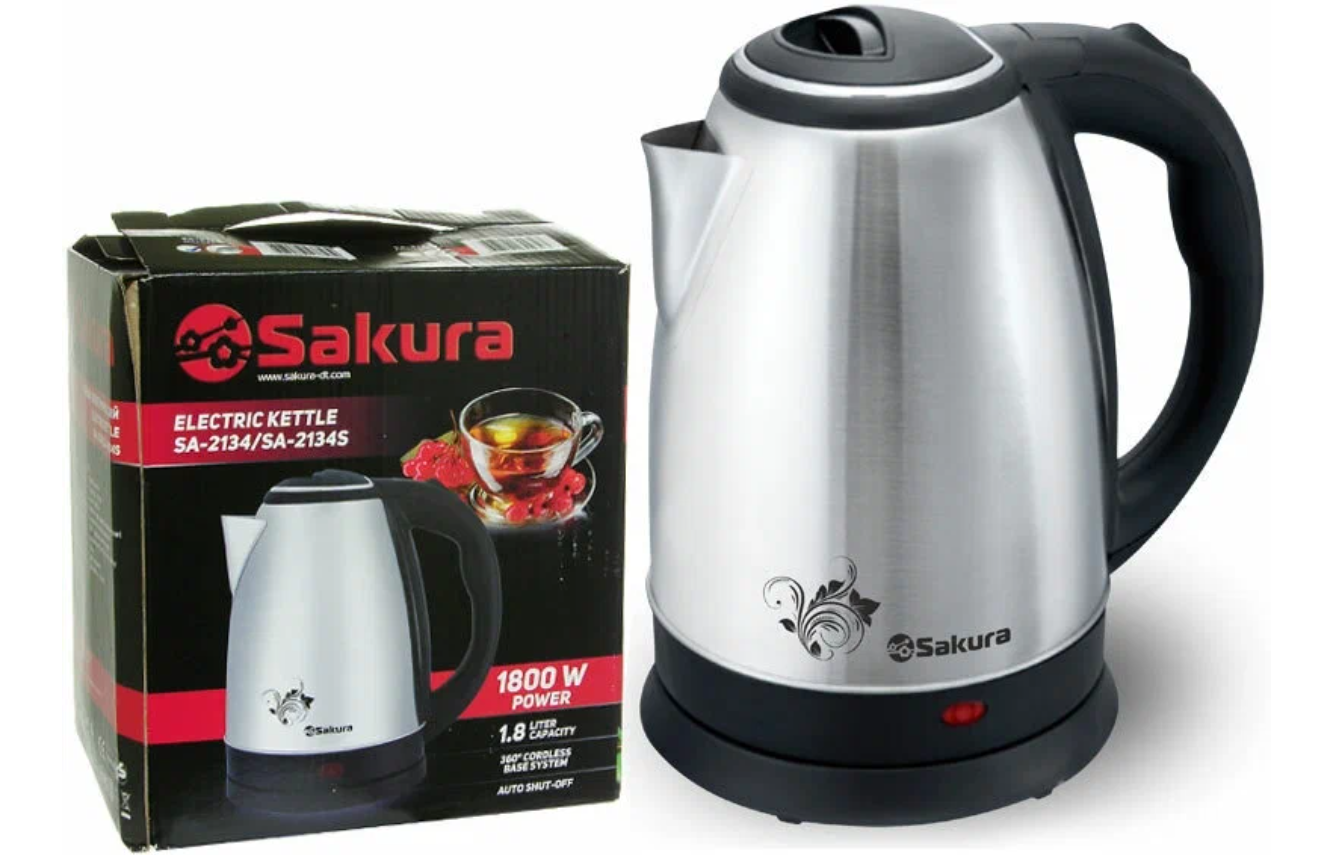 Чайник SAKURA SA-2134 (1.8 кВт, 1.8 л, ЗНЭ) нерж.корпус, (12) 633 ₽
