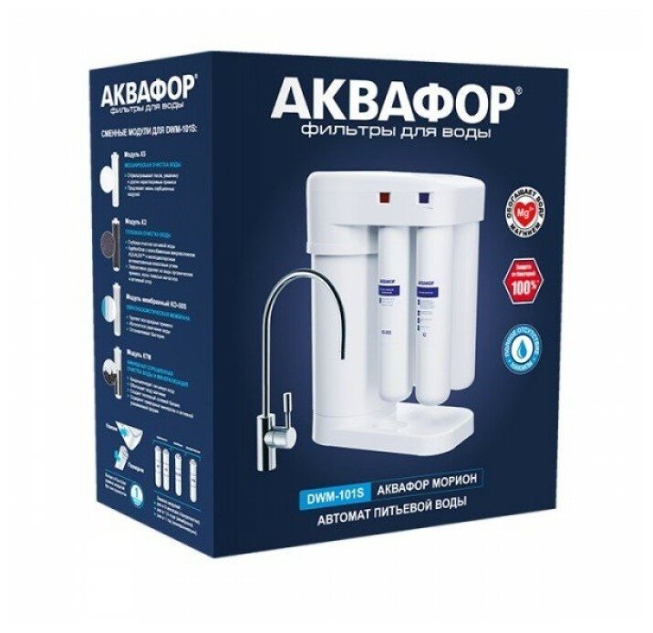 Фильтр под мойкой Аквафор DWM-101S Морион, 1/2” с обратным осмосом белый информация: