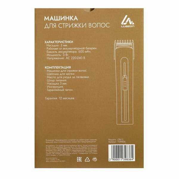 10 цен на Машинка для стрижки Luazon LTRI-11, 3 Вт, 3 мм, АКБ, серая