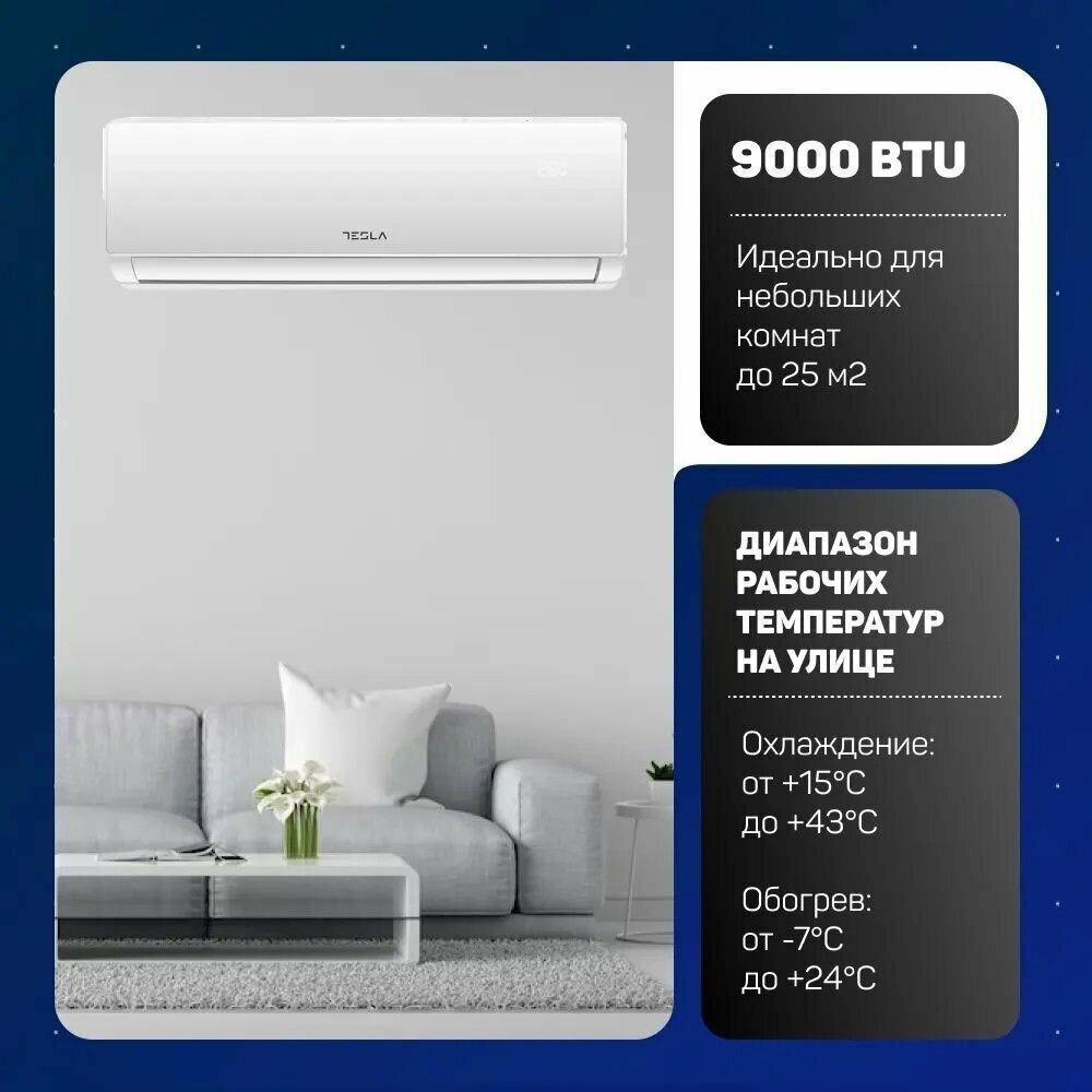 Кондиционер TESLA "Tariel" TT27X71-09410A, мощность 9000 BTU, настенный, до 25м² , с пультом д/у, белый 31 450 ₽