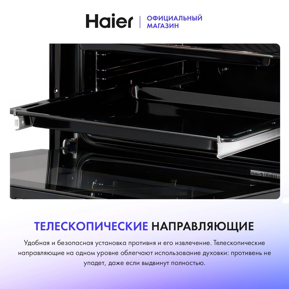 Электрический духовой шкаф Haier HOQ-F6QSN3GB, точный контроль температуры, пар