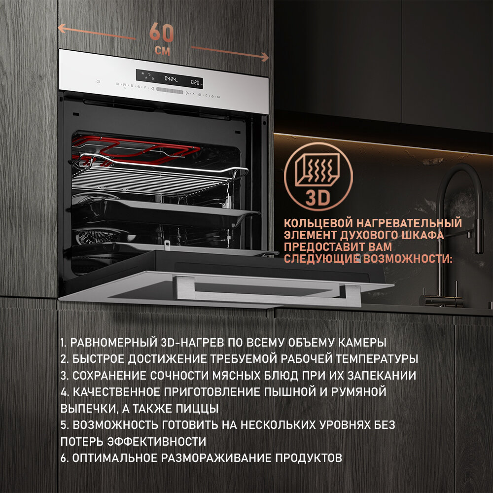 Духовой шкаф DEXP 1MMT-W , электрический, белый, 8 режимов, таймер, конвекция
