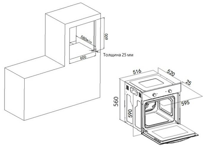 Духовой шкаф встраиваемый LEX EDM 077 C IV, 60 см, с конвекцией, механические ручки, объем 60 л, аналоговый таймер, телескопические направляющие.