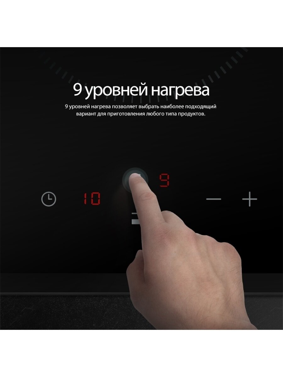 Индукционная варочная панель с инвертором Weissgauff HI 642 BFZG, 9 уровней мощности, блокировка от детей, таймер