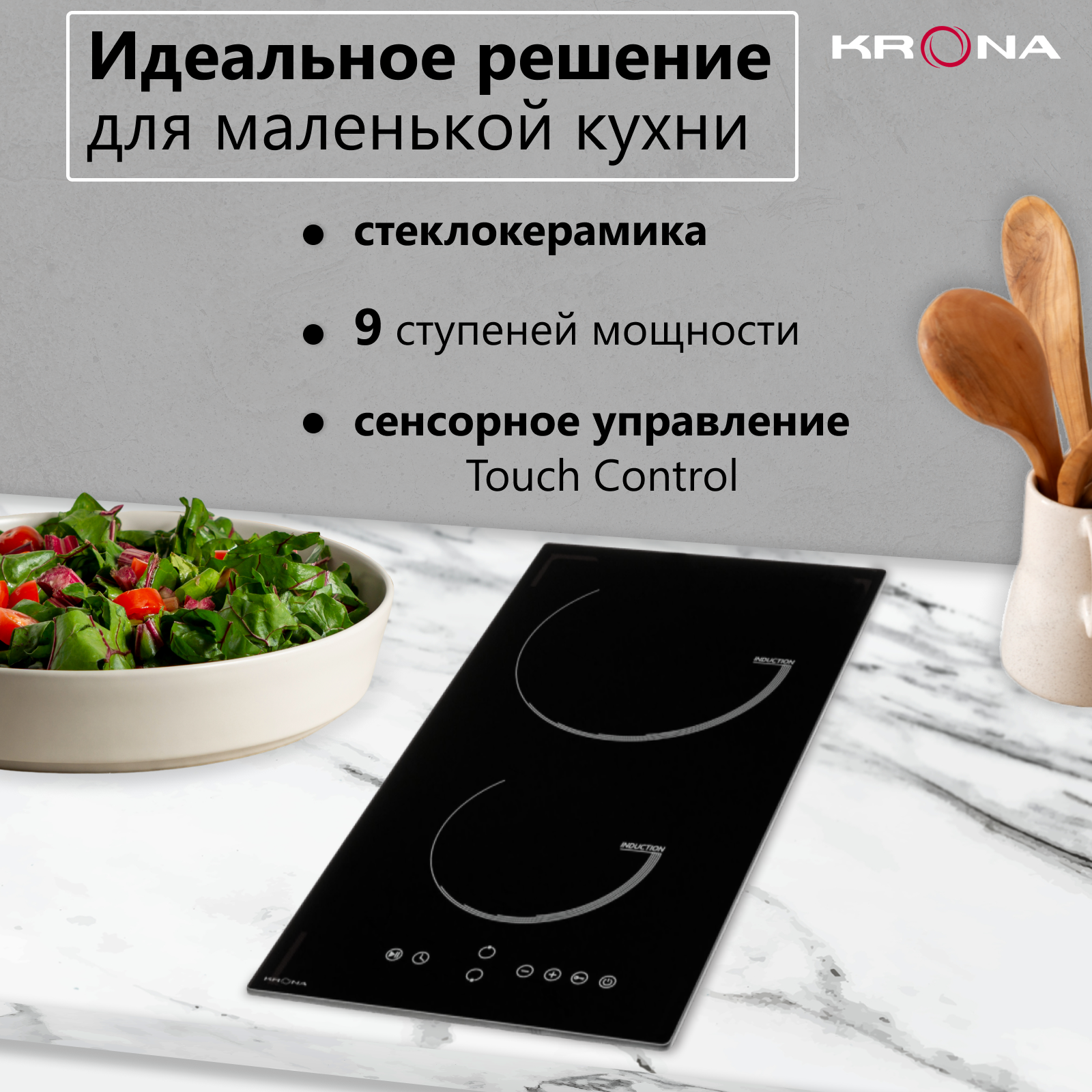 Индукционная варочная панель 30см KRONA VENTO 30 BL 9 990 ₽