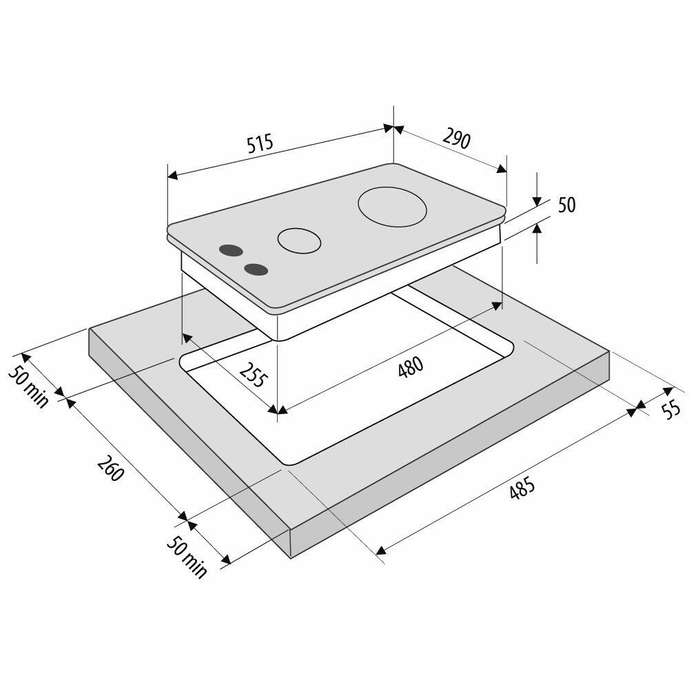 | Общее количество конфорок | 2 |