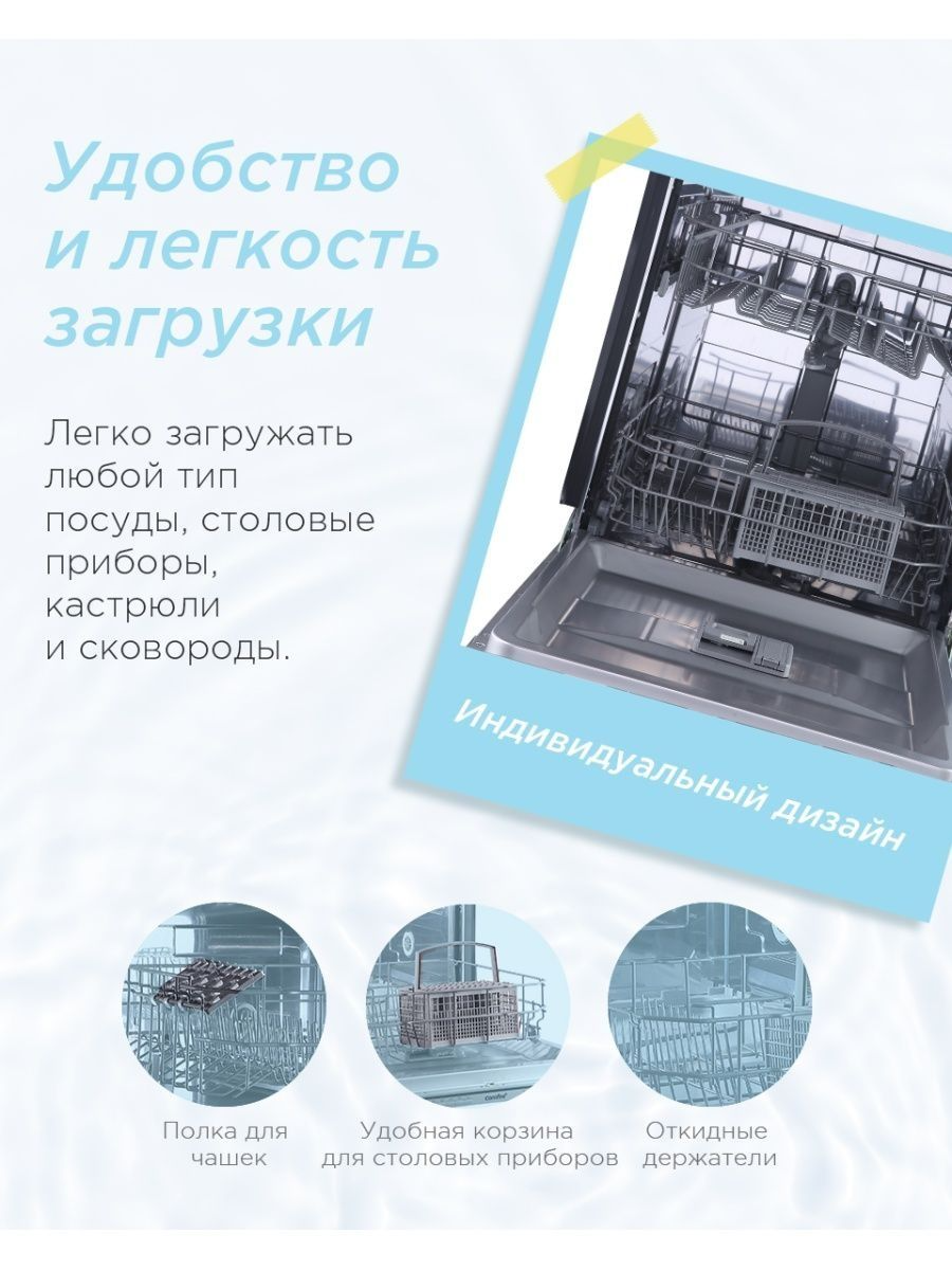 | Особенности конструкции | использование средств 3 в 1 / регулируемая по высоте корзина для посуды / таймер отсрочки |