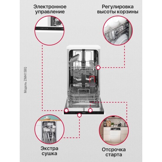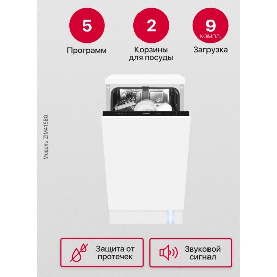 Посудомоечная машина Hansa ZIM415BQ, 45 см, компактная, с защитой от протечек, 5 программ, с 2 корзинами, с режимом половинной загрузки, с сигналом "луч на полу" 36 490 ₽