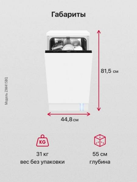 Посудомоечная машина встраиваемая Hansa ZIM415BQ, 45 см