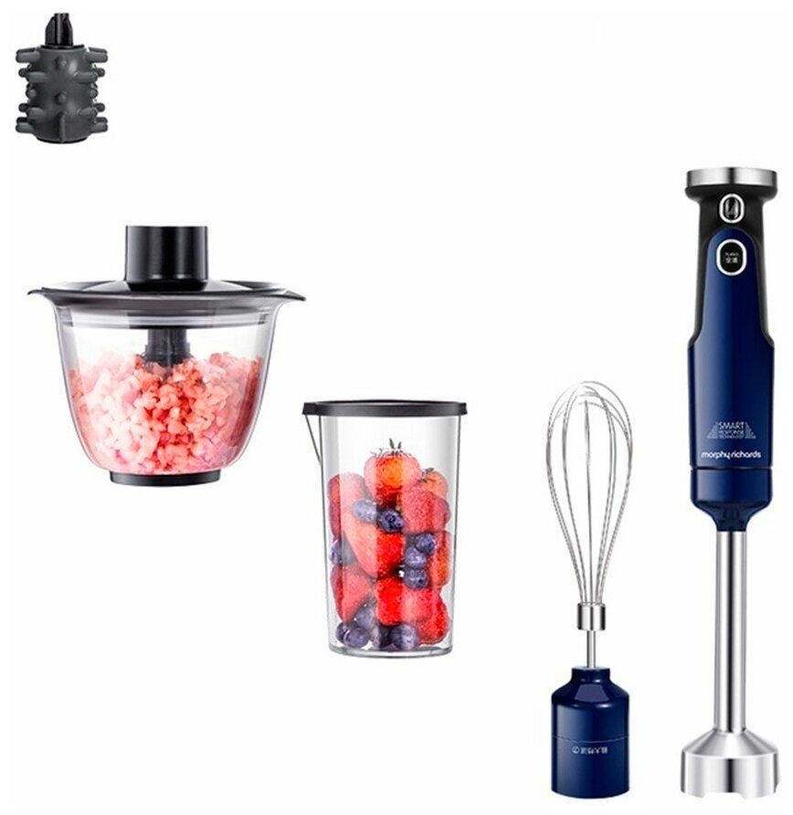 Блендер погружной измельчитель миксер с повышенным сроком службы 4 в 1 с 8-ступенчатой регулировкой скорости Morphy Richards, синий