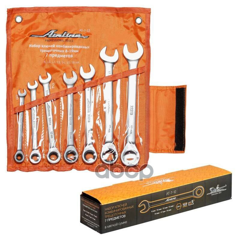 AIRLINE AT712 (AT712) набор ключей комбинированных трещоточных 8-19мм 7 предметов в мягкой с?