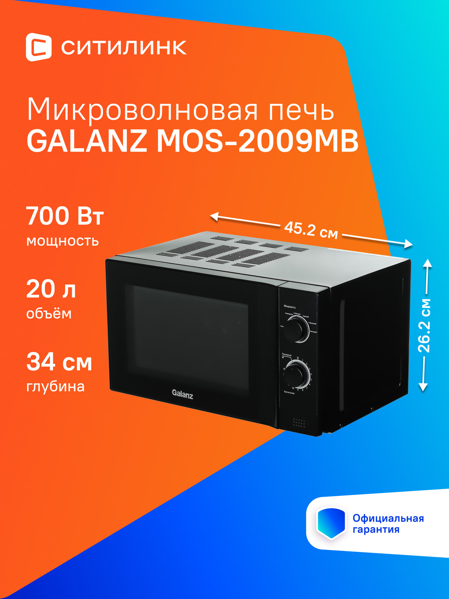 Микроволновая печь Galanz MOS-2009MB, 700Вт, 20л, черный информация: