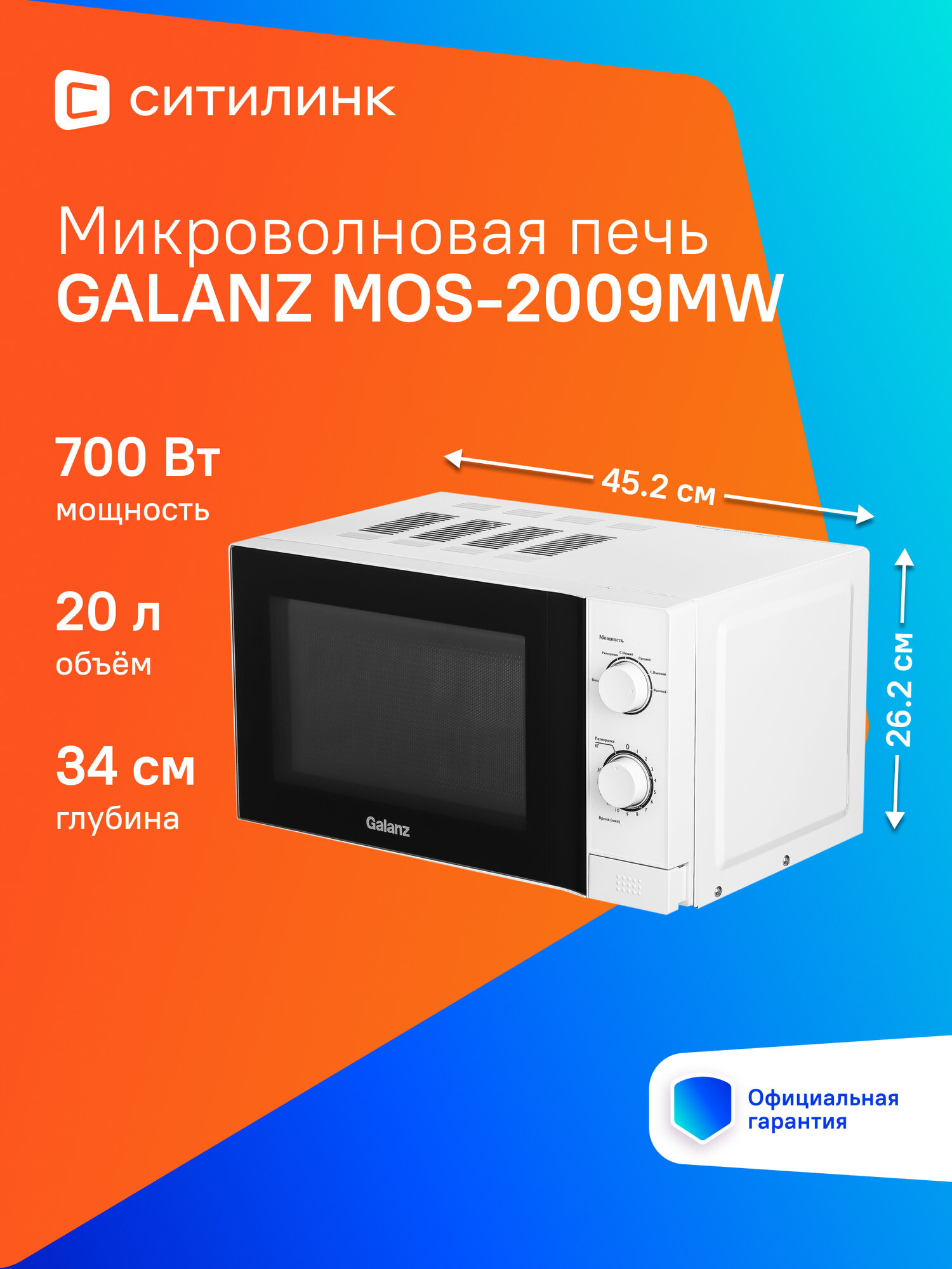 10 цен на Микроволновая печь Galanz MOS-2009MW, 700Вт, 20л, белый