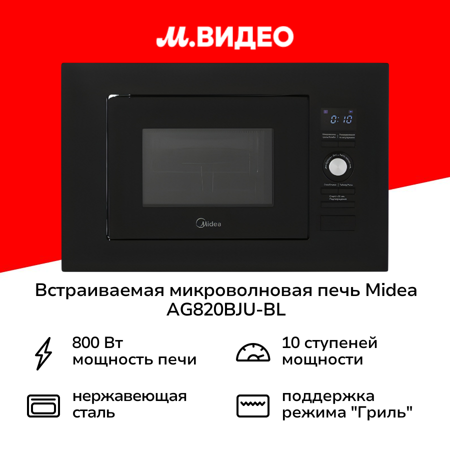 10 цен на Микроволновая печь встраиваемая Midea AG820BJU-BL, черный