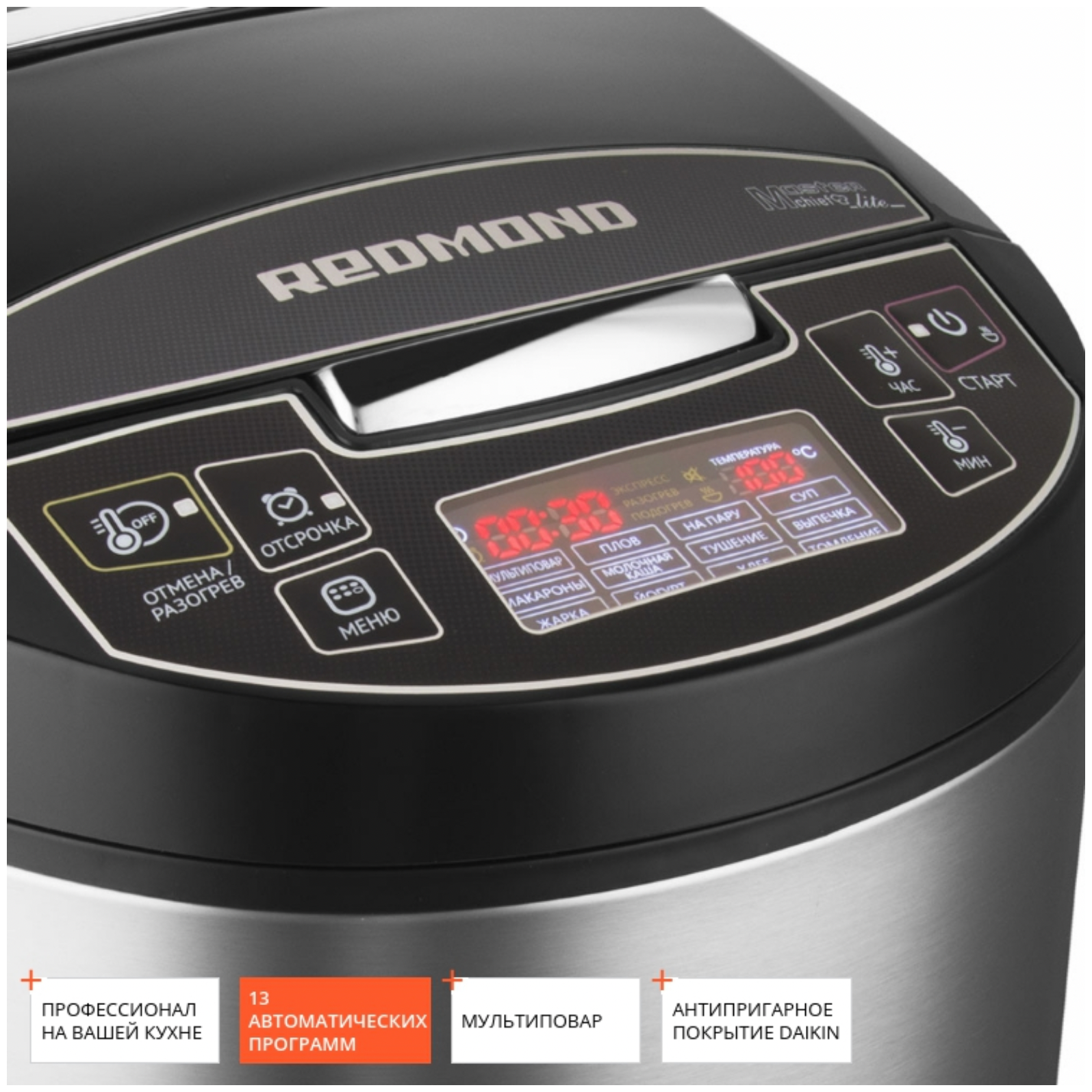 Мультиварка Redmond RMC, 13 автоматических программ, отложеный старт, поддержание тепла, регулировка времени приготовления информация: