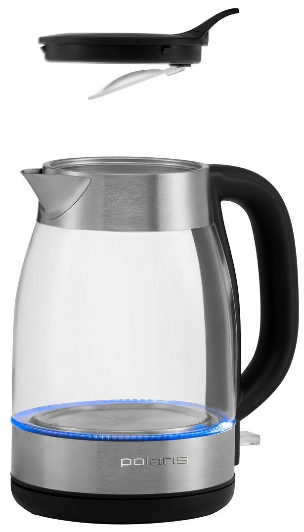 Чайник электрический Polaris PWK 1817CGL, стекло, 1.8 л, 2200 Вт, серебристо-чёрный