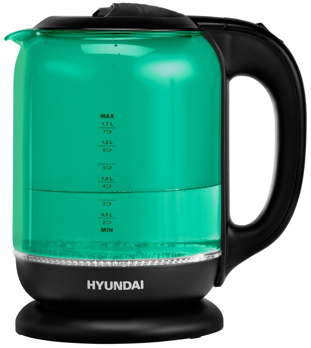 Чайник электрический Hyundai HYK-G2807, 1,8 л, стекло бирюзовое, пластик черный