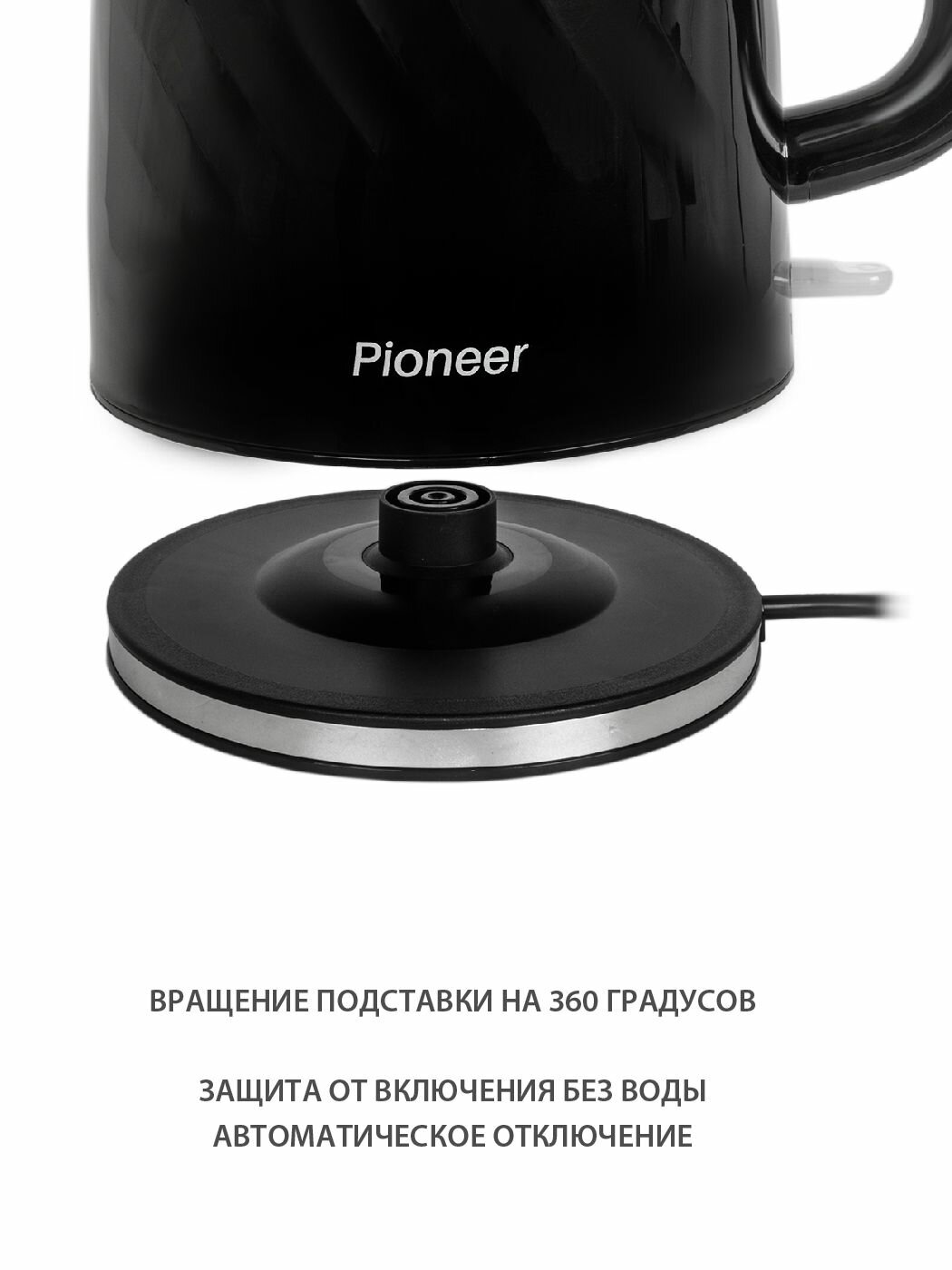Чайник электрический Pioneer 1,7 л с фильтром от накипи, автоотключение, вращение подставки на 360 градусов, индикатор включения, 2200 Вт