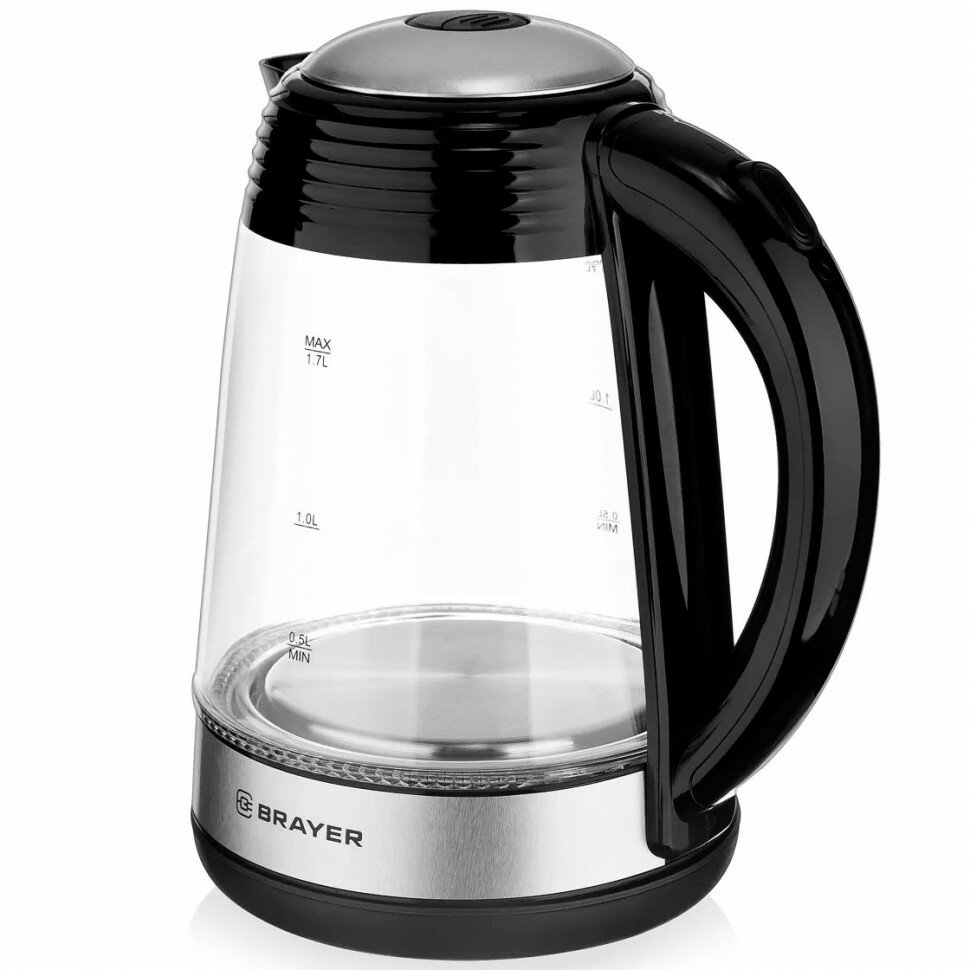 Чайник электрический BRAYER BR1012BK, стекло, 1.7 л, 2200 Вт, чёрно-серебристый 4 774 ₽
