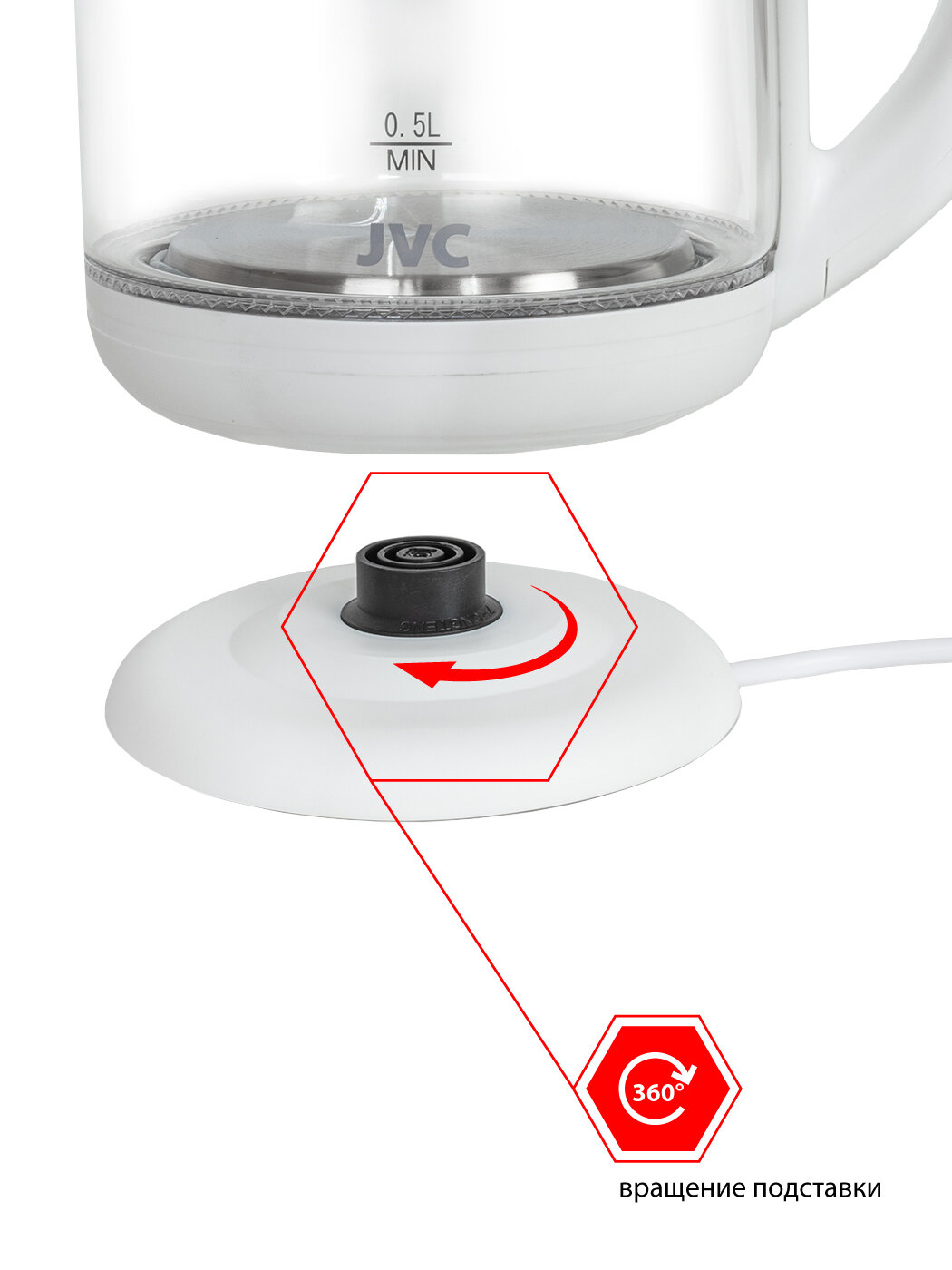 10 цен на Чайник электрический стеклянный JVC 1,7 л, LED подсветка, фильтр от накипи, автоотключение, 2200 Вт