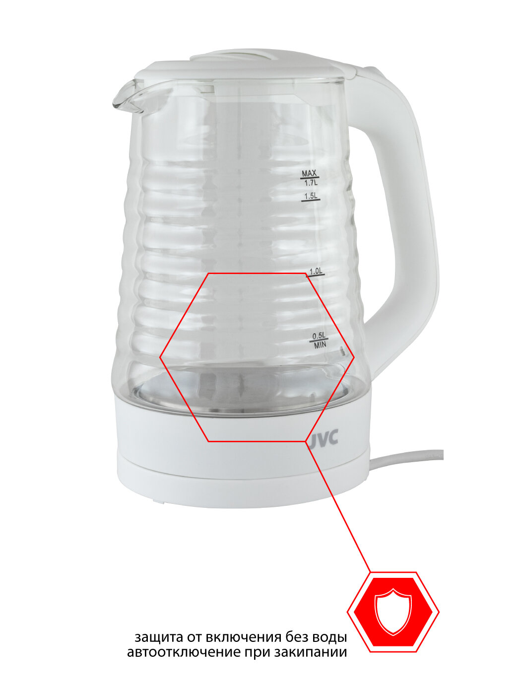 Чайник электрический стеклянный JVC 1,7 л, LED подсветка, фильтр от накипи, стильный корпус, 2200 Вт информация: