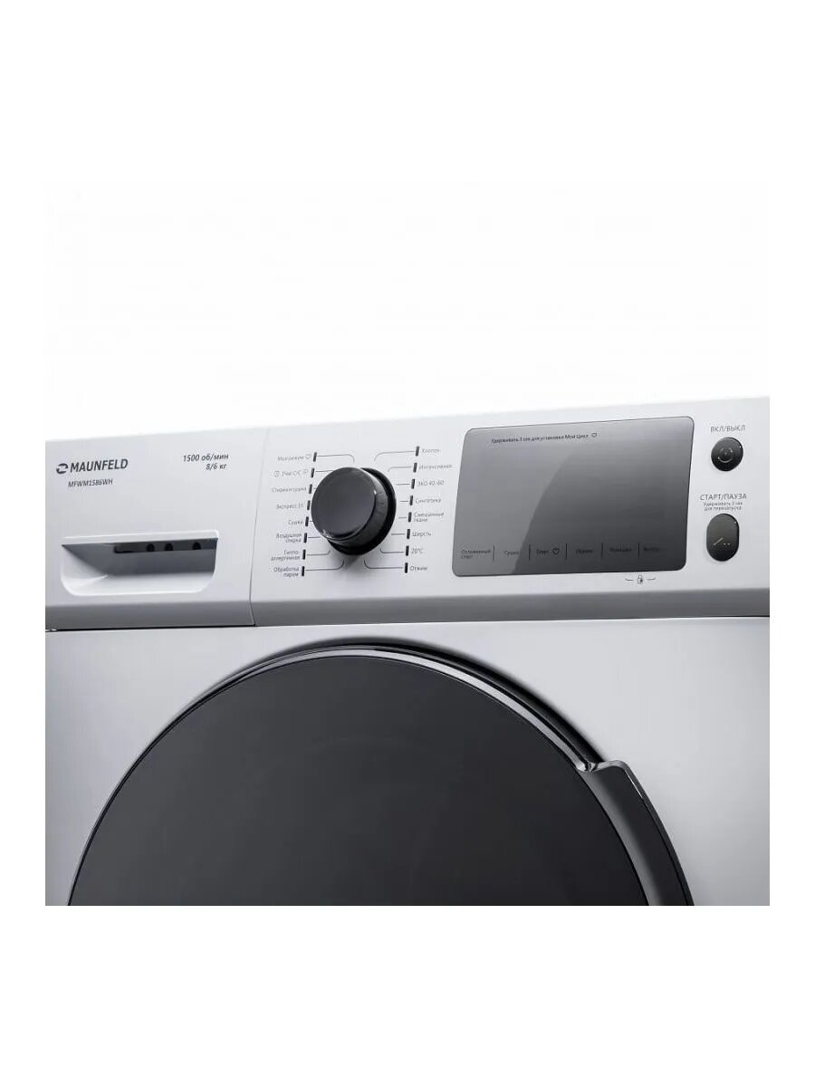 Стиральная машина с сушкой MAUNFELD MFWM1586WH, узкая, 8+6 кг, 15 программ, 1500 об/мин, инвертор, обработка паром, автобалансировка загрузки