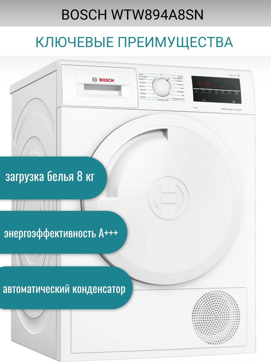 Сушильная машина Bosch WTW894A8SN информация: