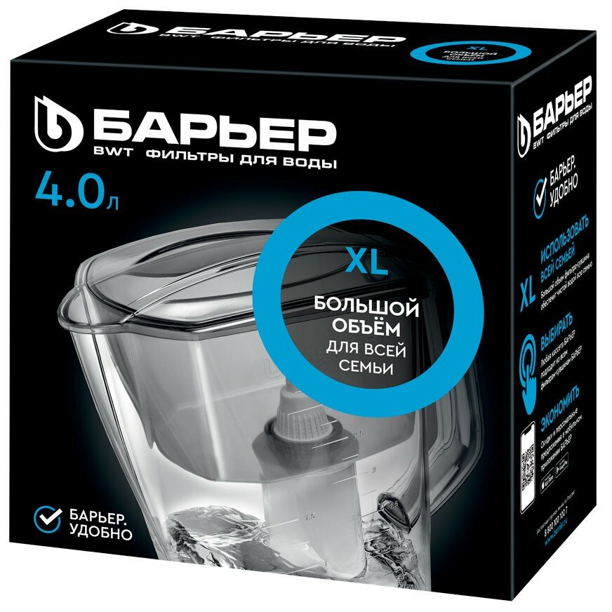 Фильтр-кувшин для воды Барьер "Гранд" 4,2 литра, гранат информация: