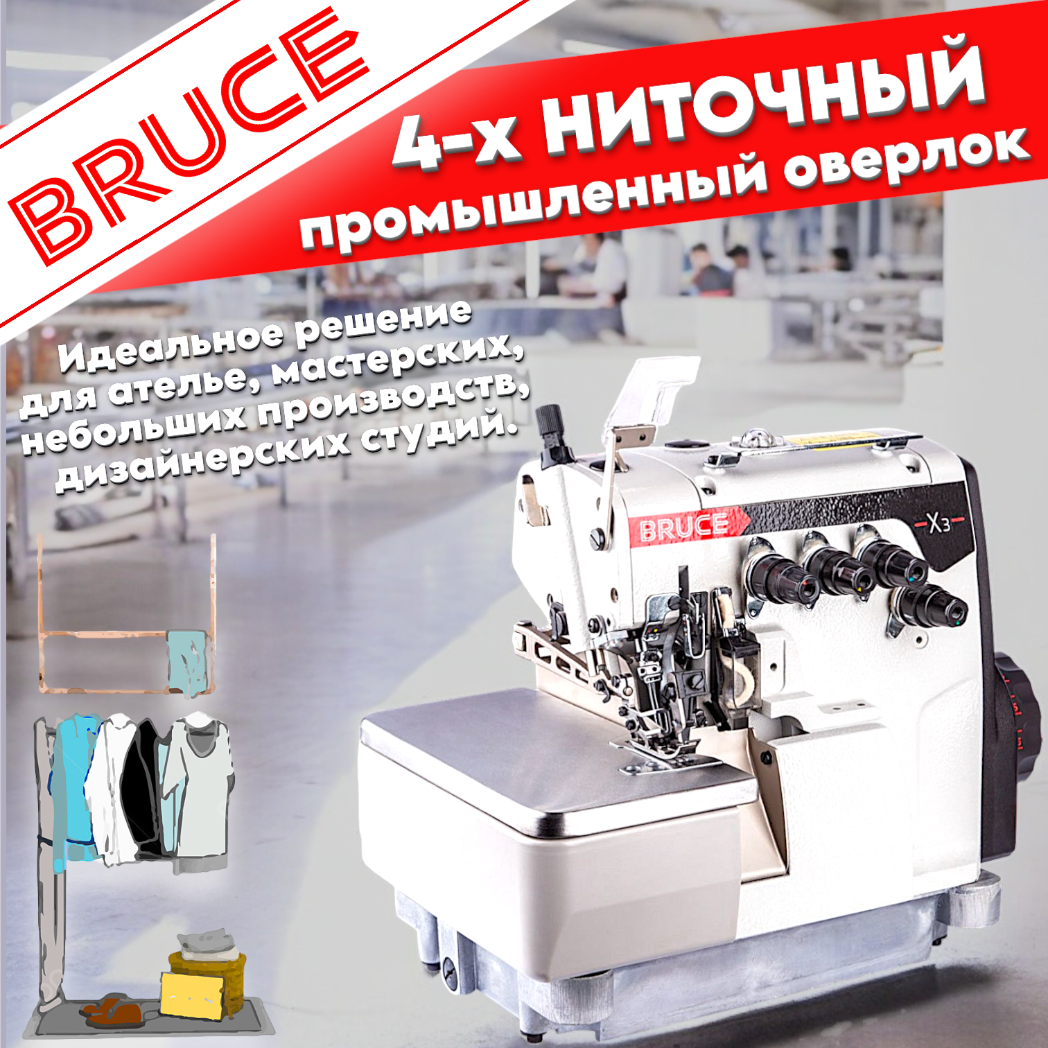 10 цен на 4-х ниточный промышленный оверлок с прямым приводом BRUCE BRC-X3-4-M2-24