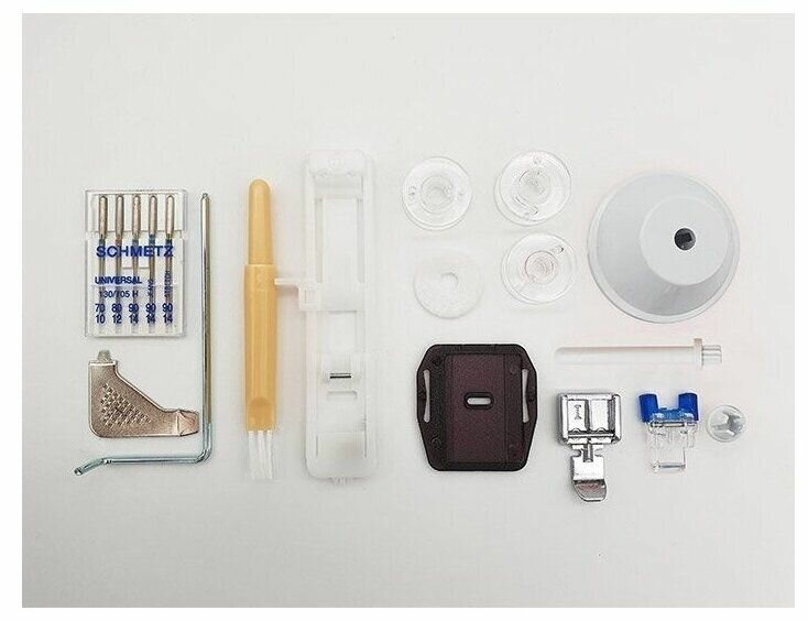 | Особенности | двойная игла, работа с грубыми тканями, работа с тонкими тканями, система измерения размера пуговиц |