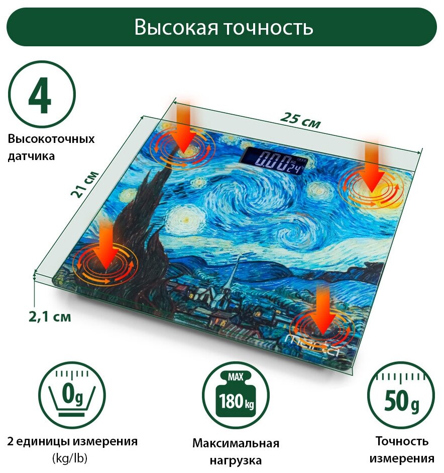 Отзывы на MARTA MT-SC1690 Звездная ночь весы напольные сенсор, встроенный термометр