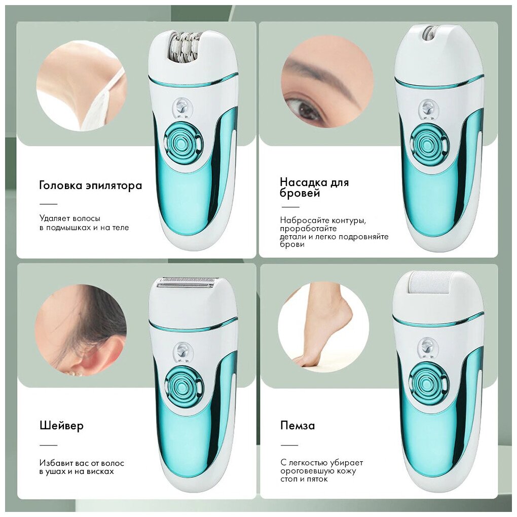 Депилятор женский 4 в 1/эпилятор/женский триммер/уход за телом/кожей, в зоне бикини, подмышках/домашний/белый/зеленый/для дома информация: