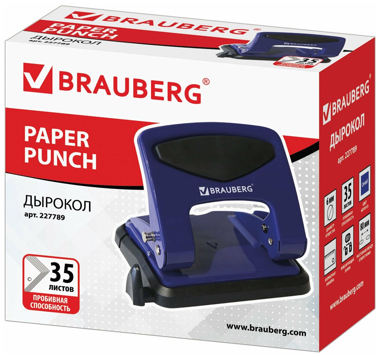 Дырокол BRAUBERG PN-150M 35 листов, 1 шт., синий