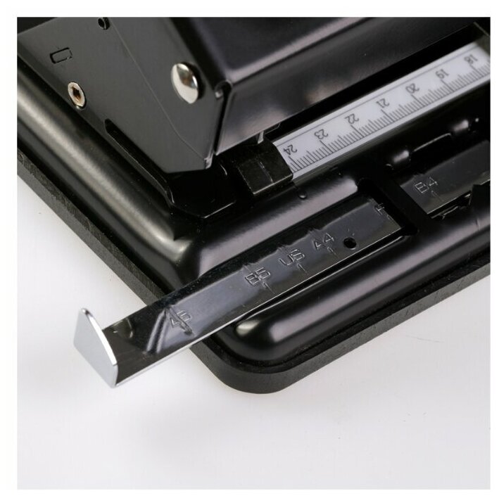 | Дополнительная информация | расстояние между центрами отверстий 8 -140 мм; стальные винты для настройки расстояния между отверстиями; линейка до 26см; металлическая выдвижная форматная линейка для настройки по формату: до формата B3 (352х500мм); метка центрирования |