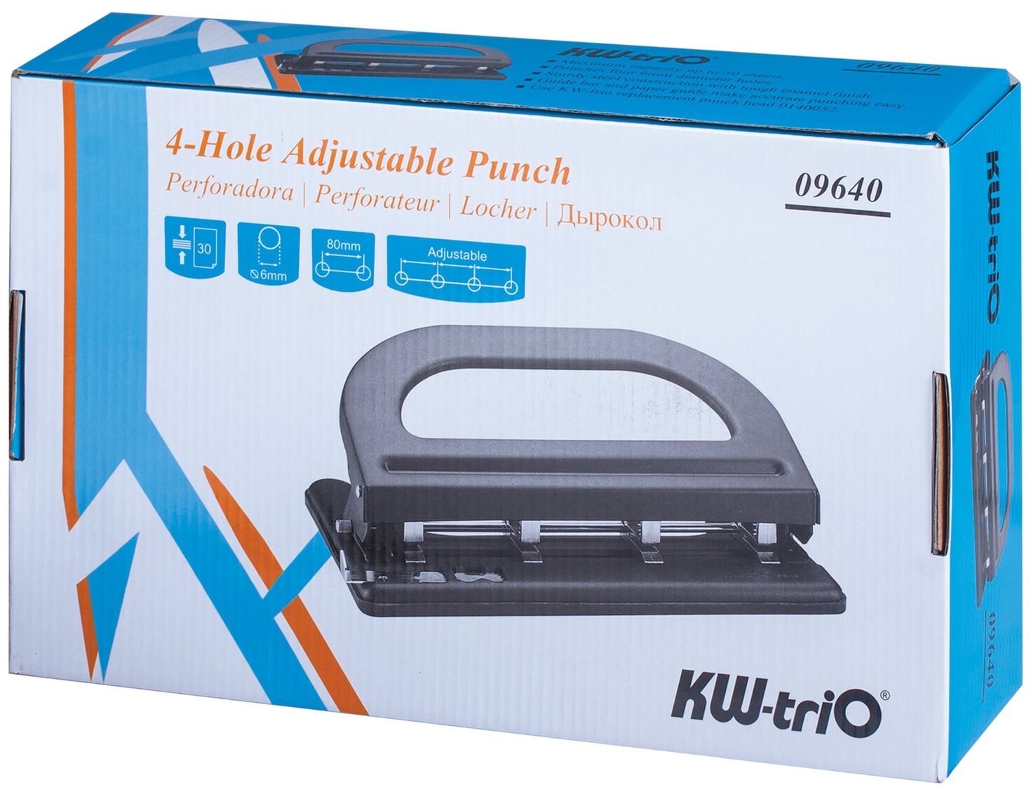 Дырокол 30 листов KW-Trio, на 4 отверстия, с регулировкой 964